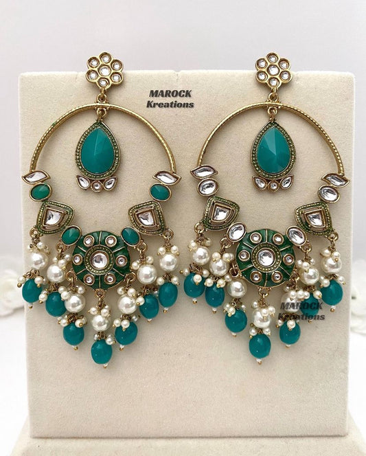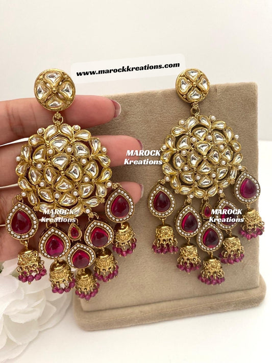 Bollywood style Polki Bahubali Jhumki Earrings comes with saharey
