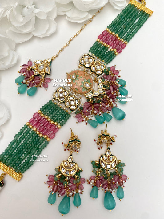 Brinda Premium Quality Kundan Meenakari Statement Choker set