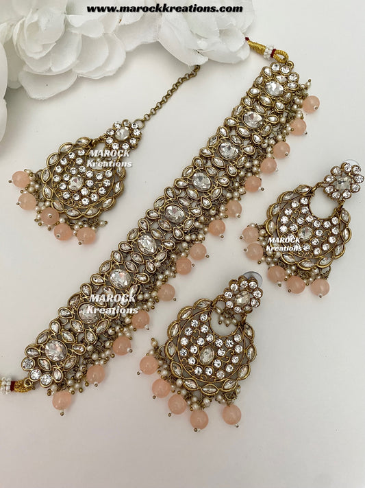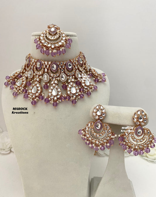 Kaniz Premium Quality Rose Gold Kundan Meenakari Choker/Necklace set
