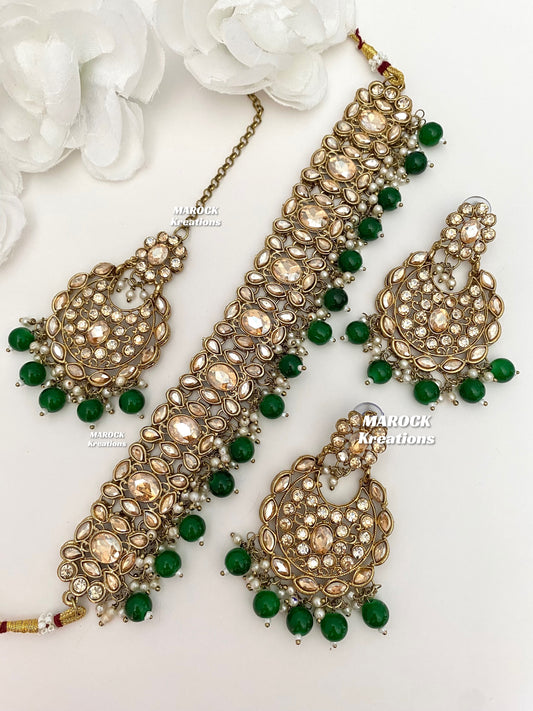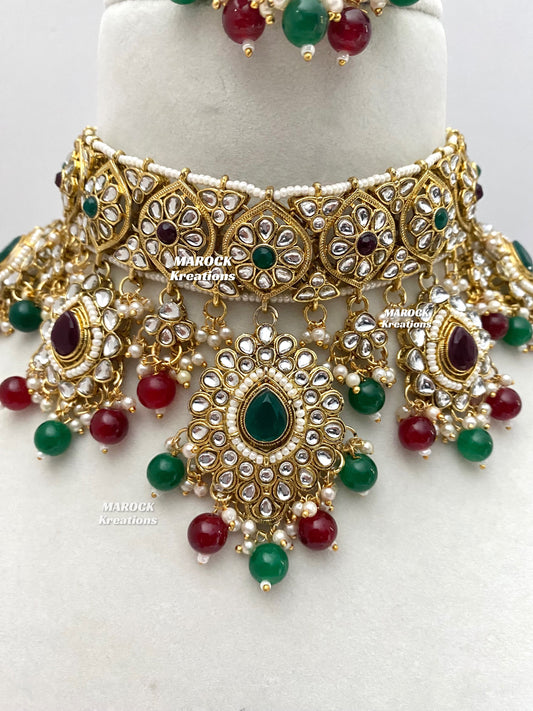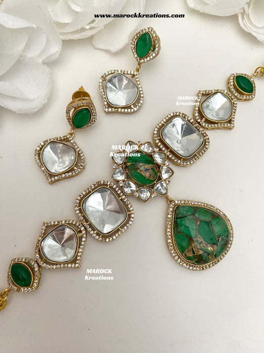 Kalpana Premium Quality Moissanite Kundan and doublet stone Statement Choker set