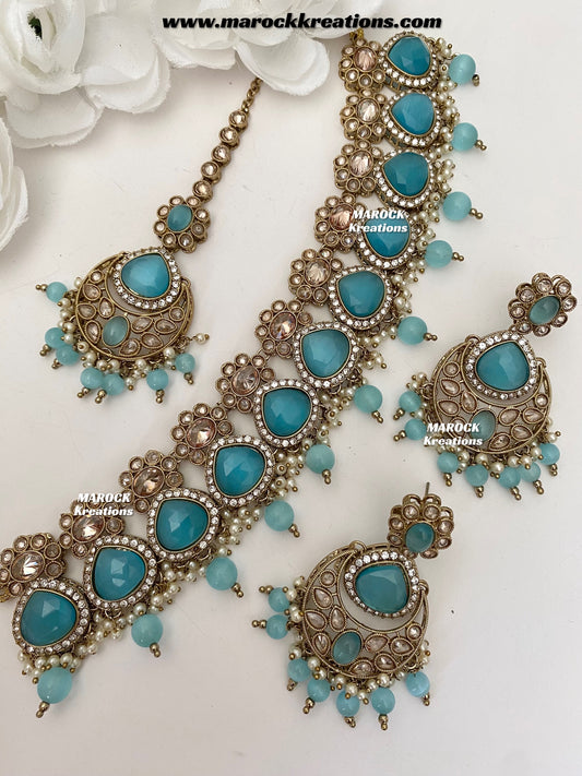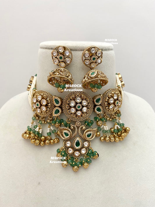 Kaysha Premium Quality Gold plated tyani inspired uncut kundan choker set