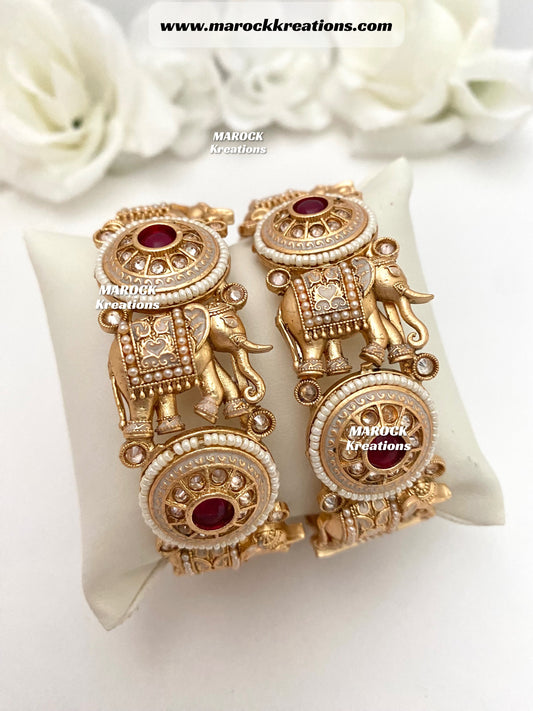 Krisha Premium Quality Matt Finish Gold plated openable Elephant kade/Bangles/Kangan