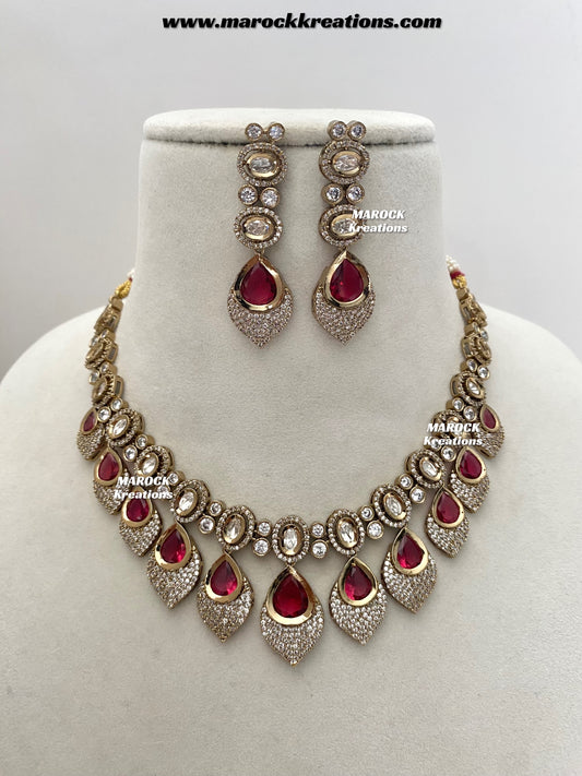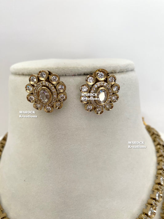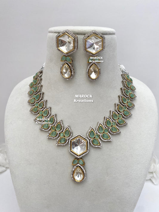 Kimmi Premium Quality Moissanite Kundan and American diamond Necklace set