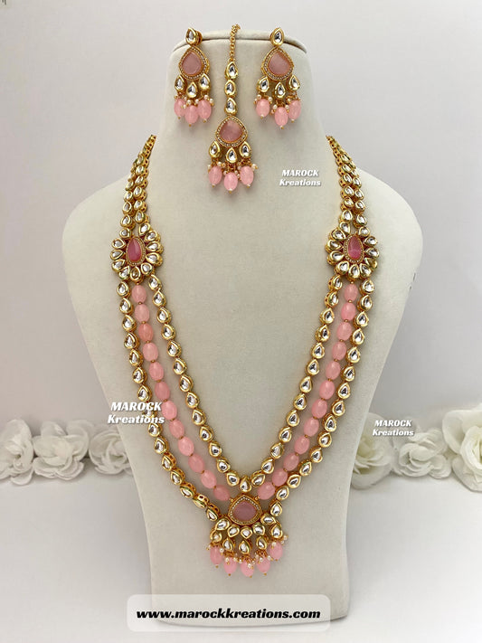 Kundan and Monalisa Rani Haar/Long necklace (Back side Meenakari)