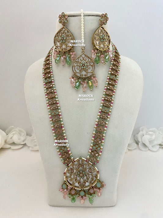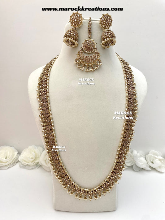 Mohima Premium Quality Antique Gold Polki Raani Haar/Long necklace set