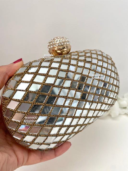 Mirror Handcrafted Clutch/Evening Bag/Purse comes with a shoulder string
