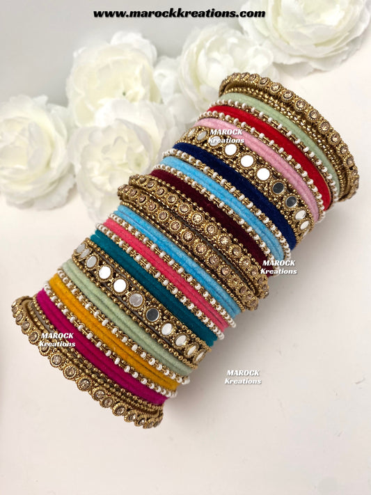 Multi color Bangles set with mirror kade/ jago and sangeet bangels
