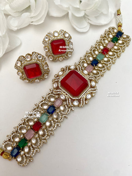 Paloma Sabyasachi inspired Premium Quality Moissanite Kundan and American Diamond choker set
