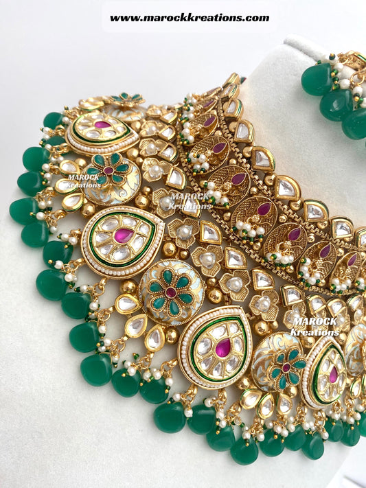 Palak Premium Quality Kundan Meenakari Statement Choker set