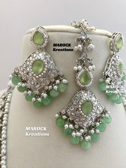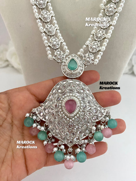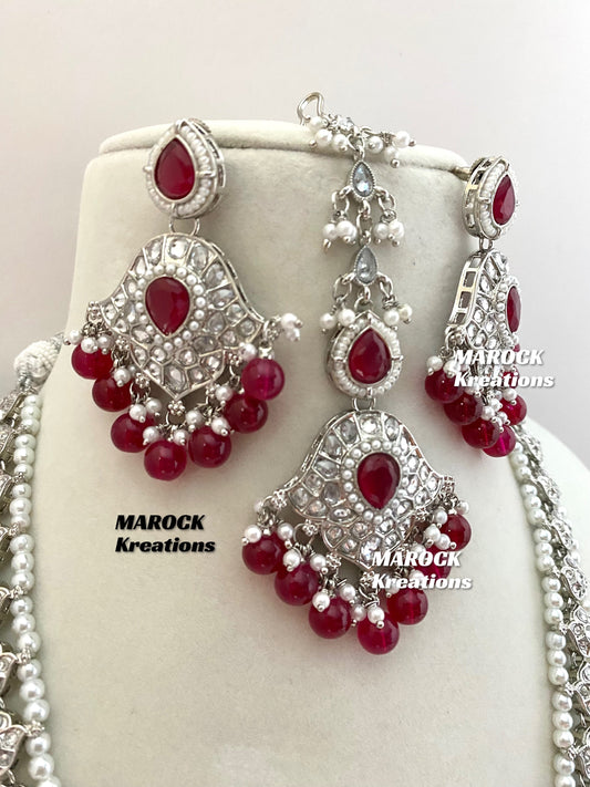 Polki Raani Haar in silver maroon dark red/Long necklace