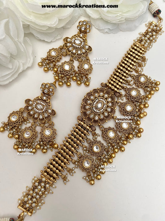 Premium Quality Gold Plated Rajwadi Kundan statement choker set