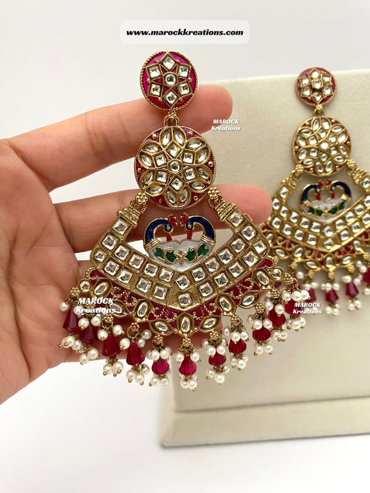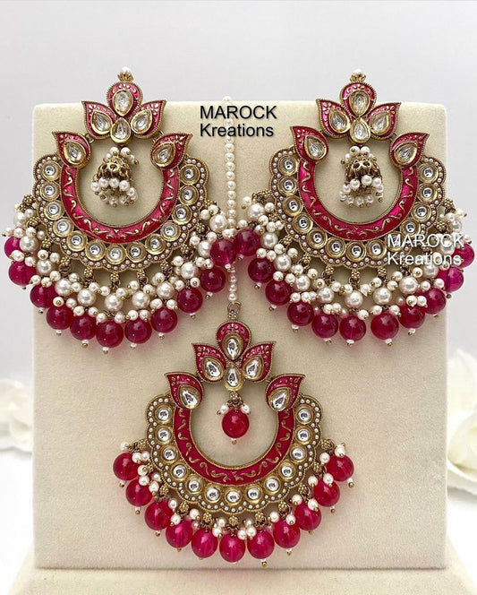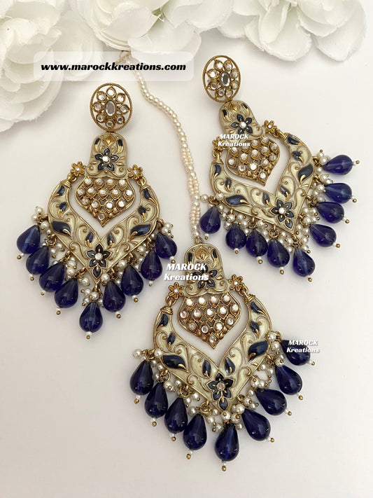 Premium Quality Kundan Meenakari Earrings and tikka set
