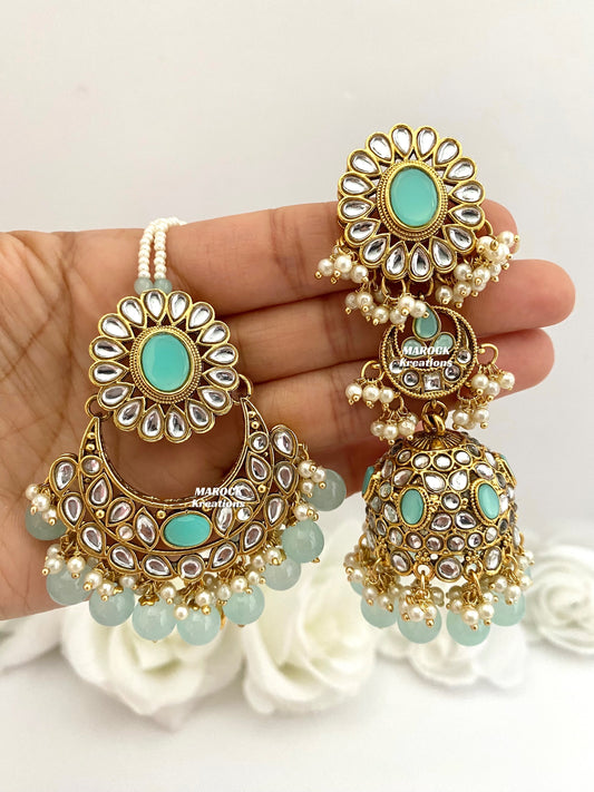 Premium Quality Kundan Jhumki Earrings and tikka sets