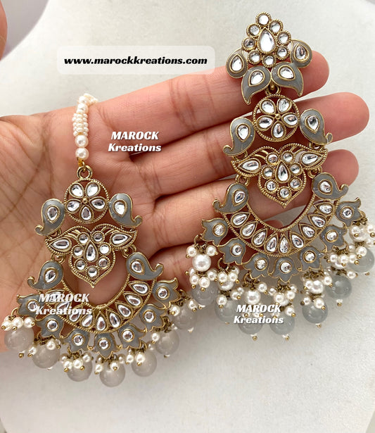Premium Quality Kundan Meenakari Statement Earrings and tikka sets