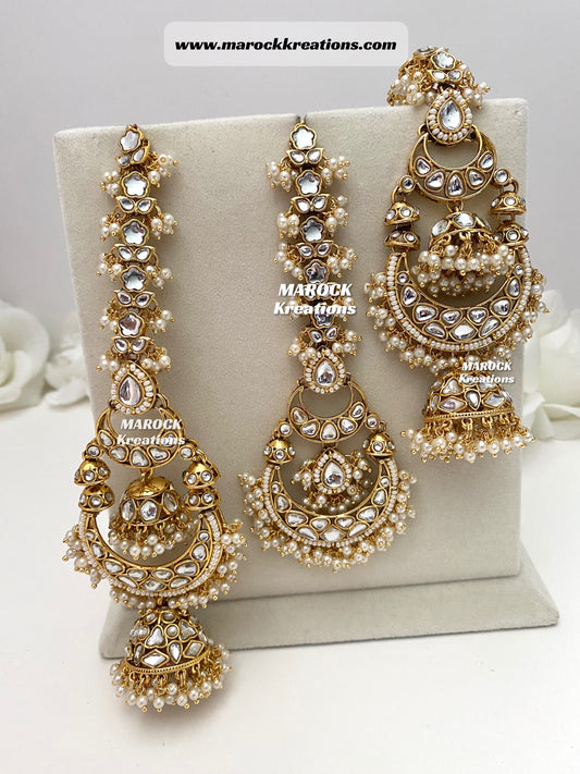 Premium Quality Kundan Oversized Statement Jhumki Earrings and tikka set