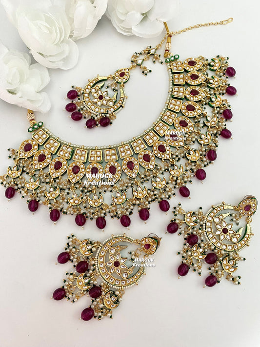 Premium Quality Thappa Kundan Necklace set/Bridal set