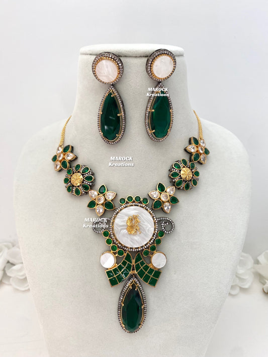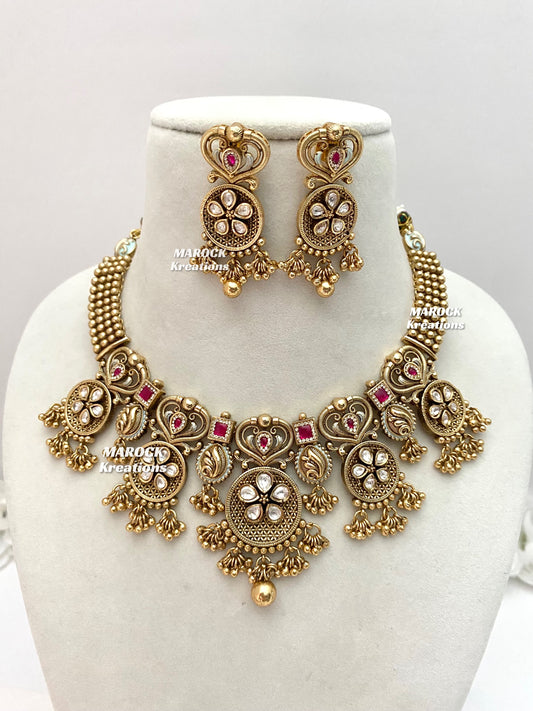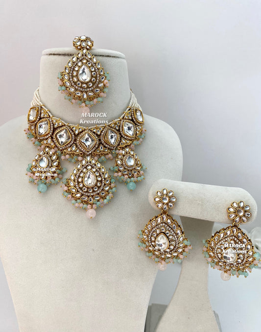 Raina Premium Quality uncut Kundan Statement Necklace set