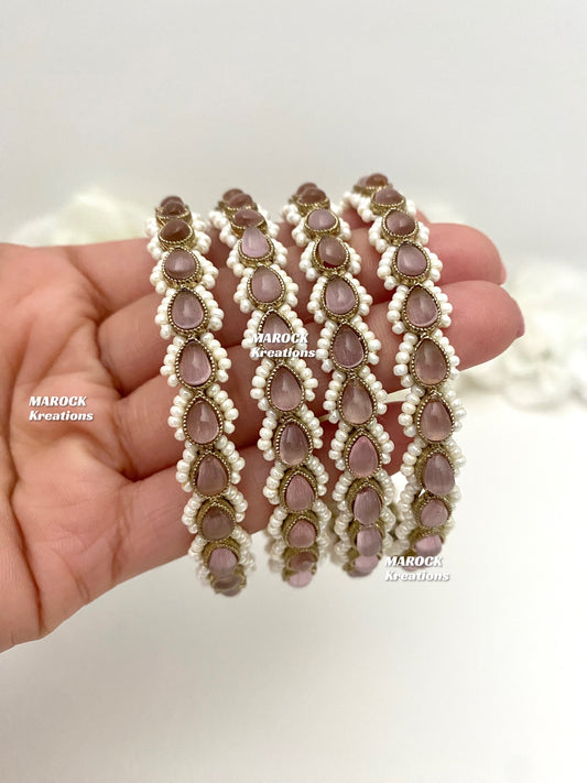 Purvi Premium Quality Pink Monalisa Bangles/Kade (set of 4)