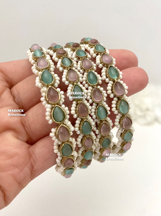 Purvi Premium Quality Pink/Mint Monalisa Bangles/Kade (set of 4)