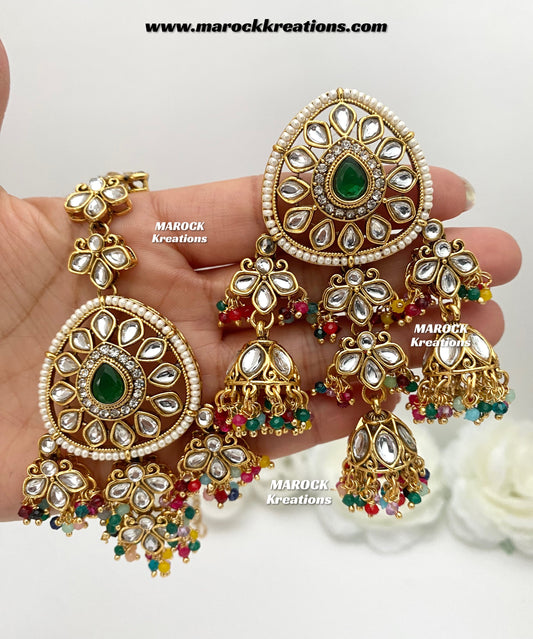 Rebecca Premium Quality Kundan Statement Earrings and tikka set