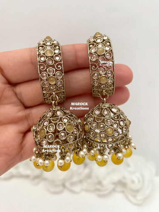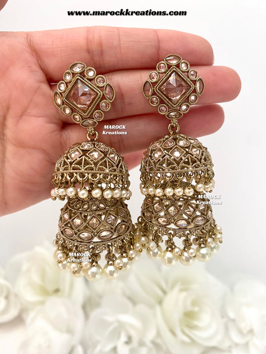 Rehana Antique Gold Polki double jhumki Statement Earrings