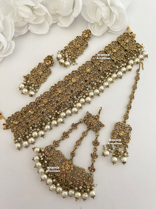 Antique Gold and Silver Polki sheesh phool/head band/head piece