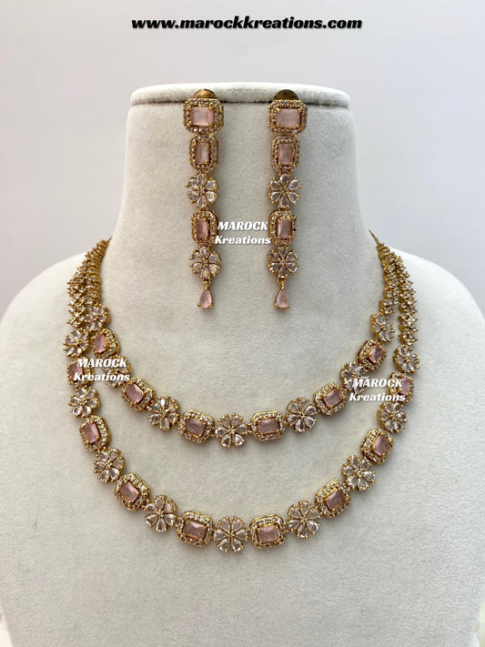 Sineka Antique Gold American Diamond double layer Statement Necklace set