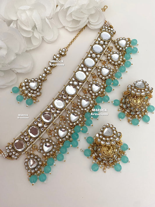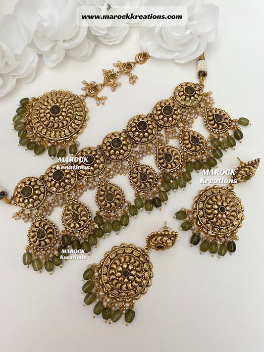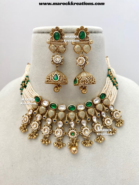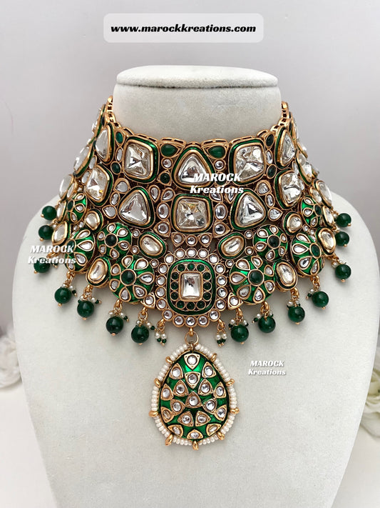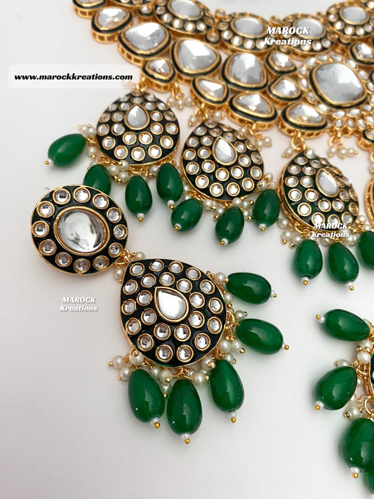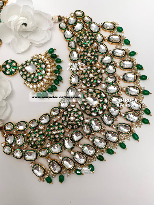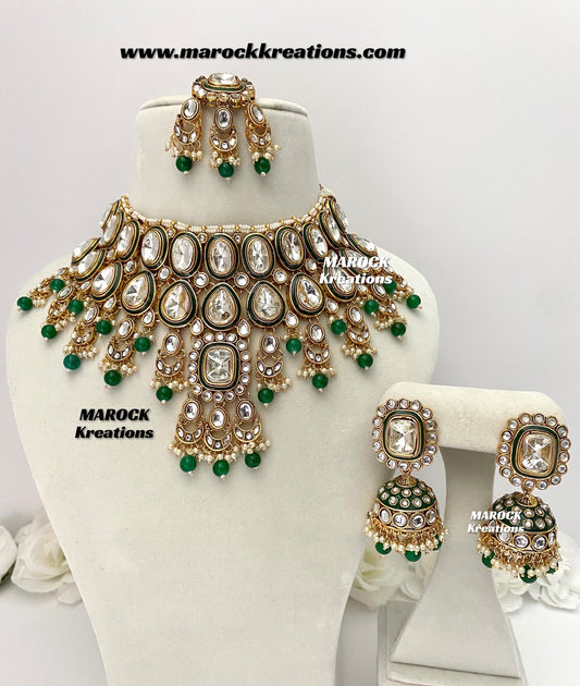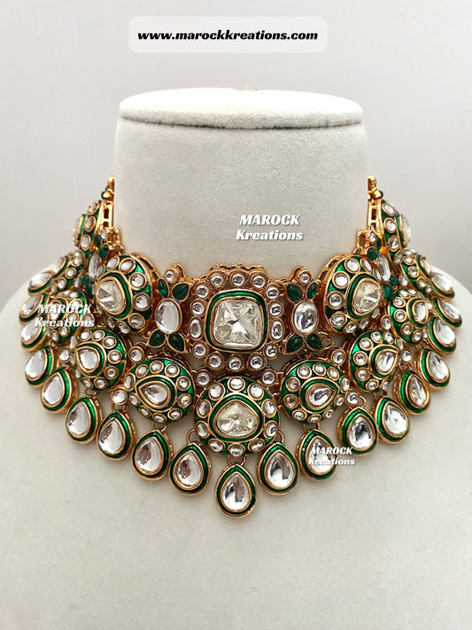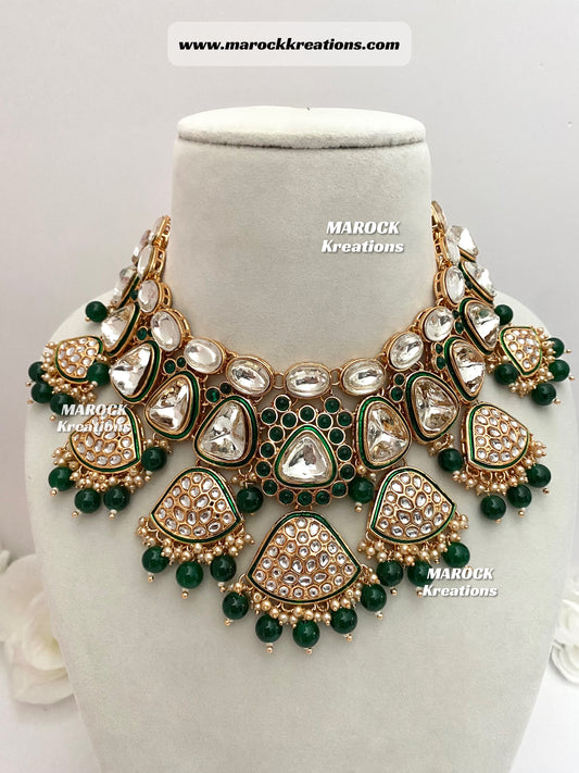Trendy Uncut Kundan Green Statement Necklace set/Bridal set