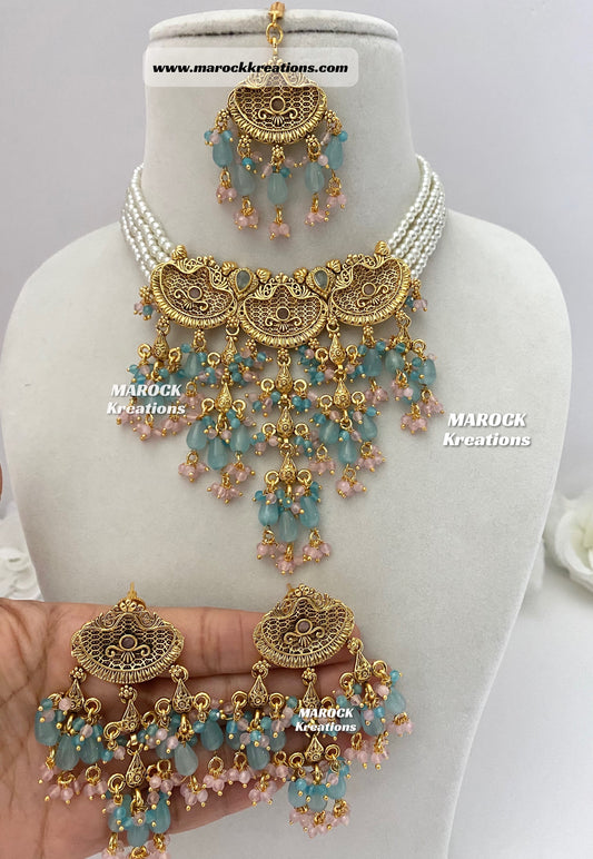 Trina Premium Quality exclusive Gold Plated Meenakari Rajwadi choker set