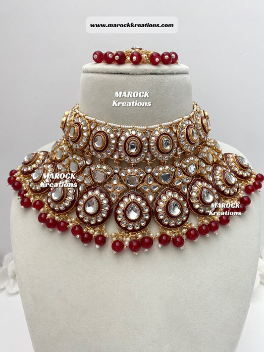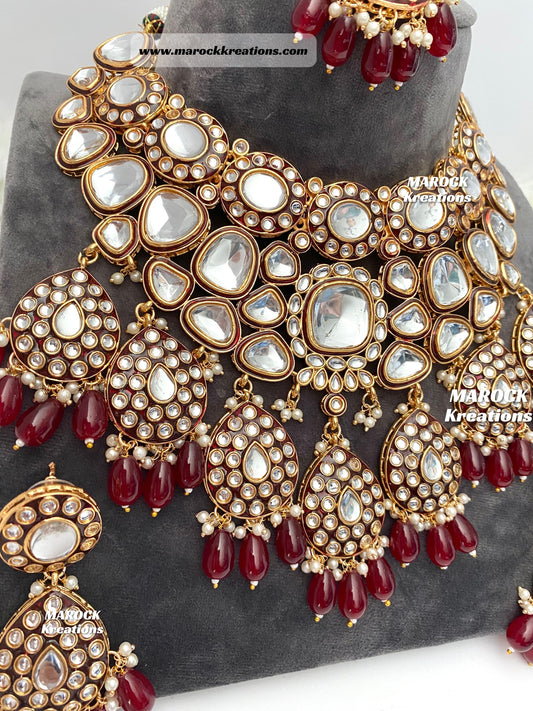 Trendy Uncut Kundan Maroon Statement Necklace set/Bridal set