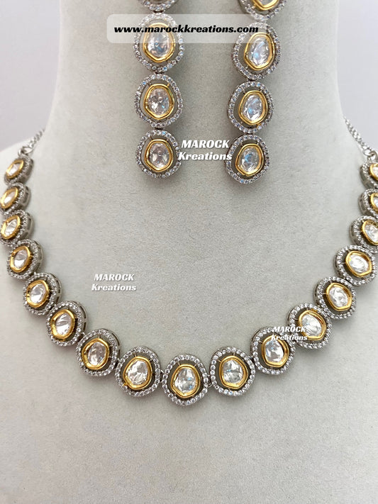 Tyani inspired Premium Quality dual tone uncut Kundan Necklace set