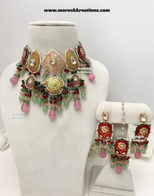 Zina Premium Quality Kundan Meenakari Statement Choker setVendor:MAROCK KreationsRegular price $185.00 CADRegular priceUnit price per-