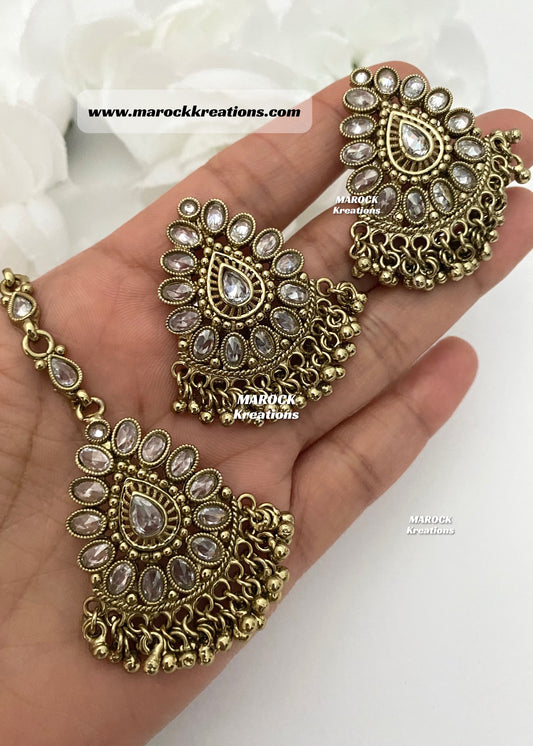 Antique Gold Polki Studs/Earrings and tikka set