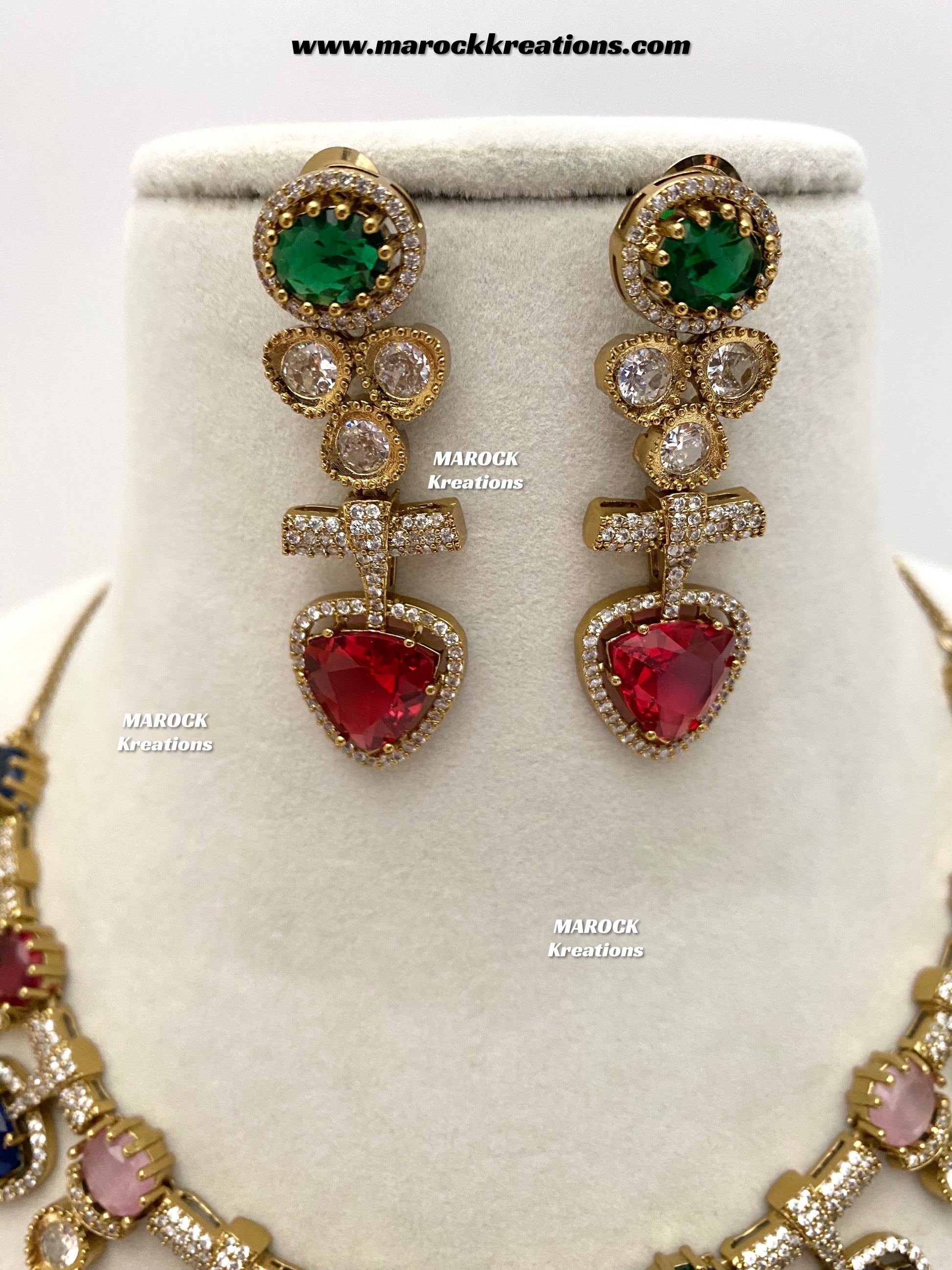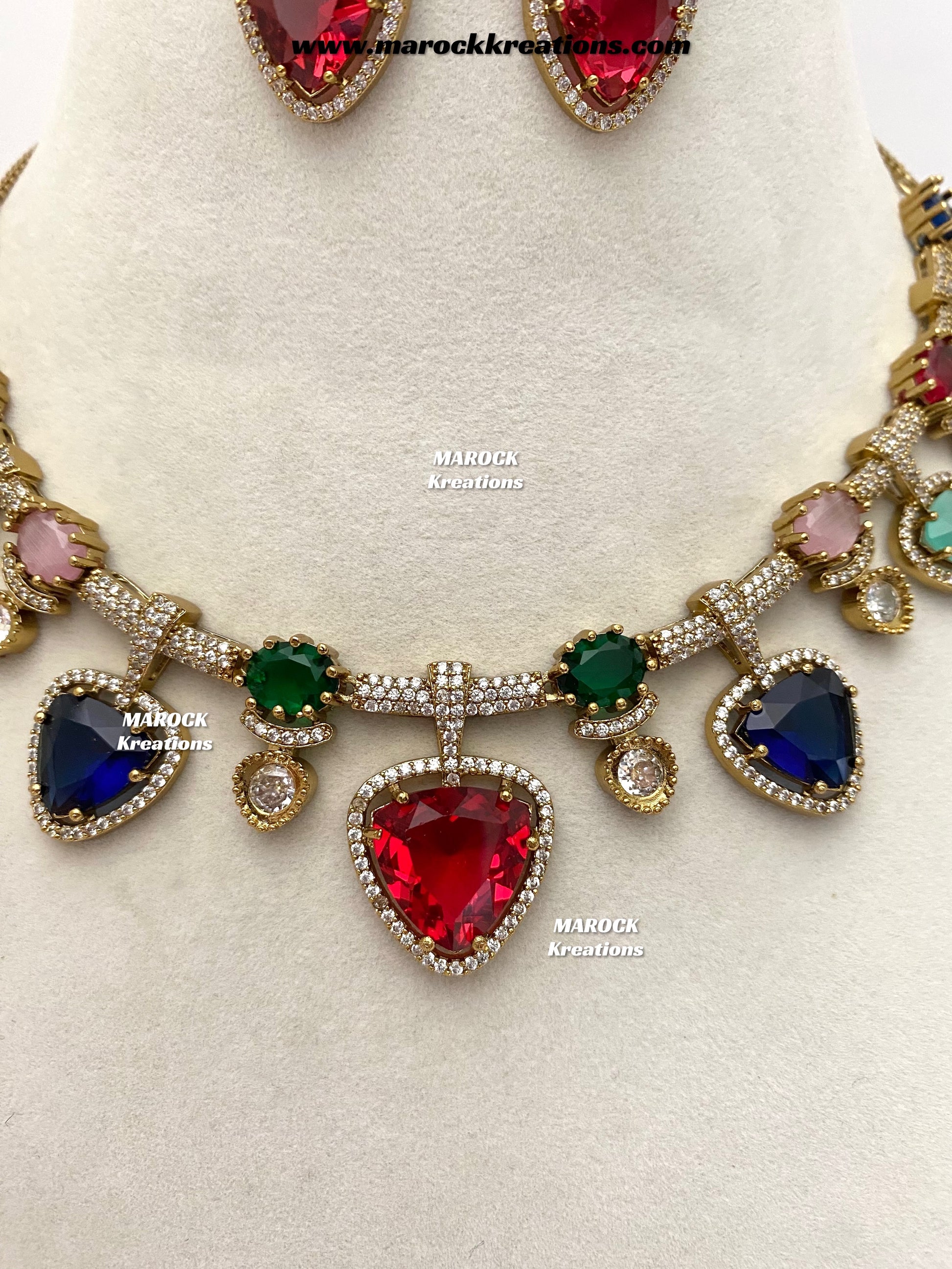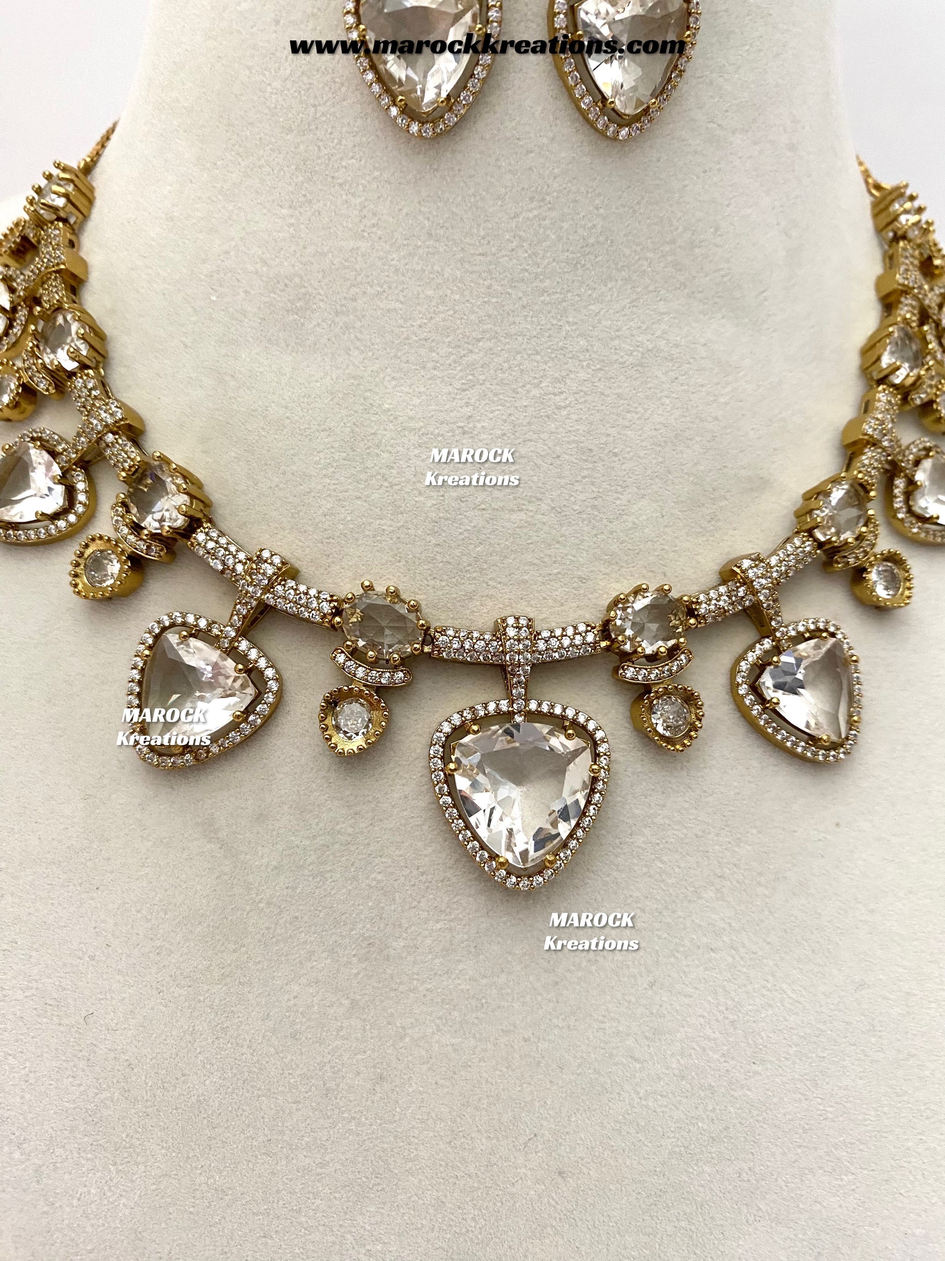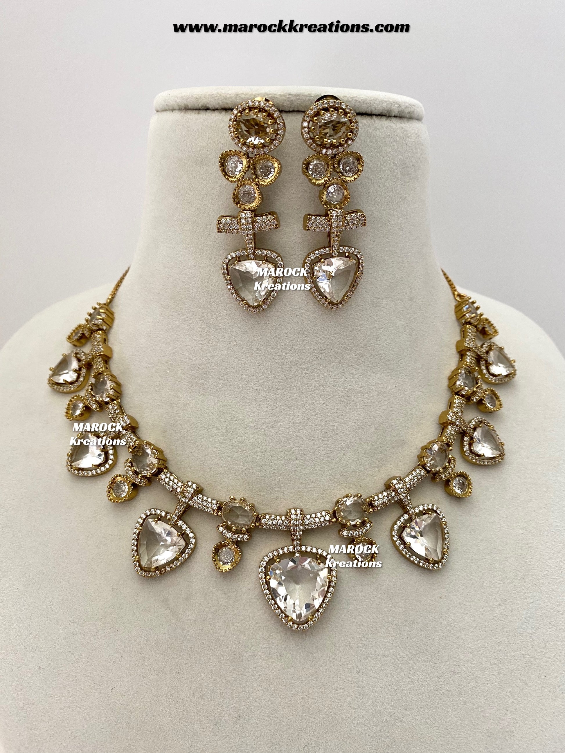 Isabel Antique Gold American Diamond Statement Necklace set