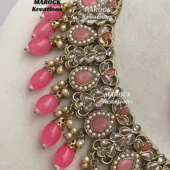 Antique Gold/Coral Polki Necklace set