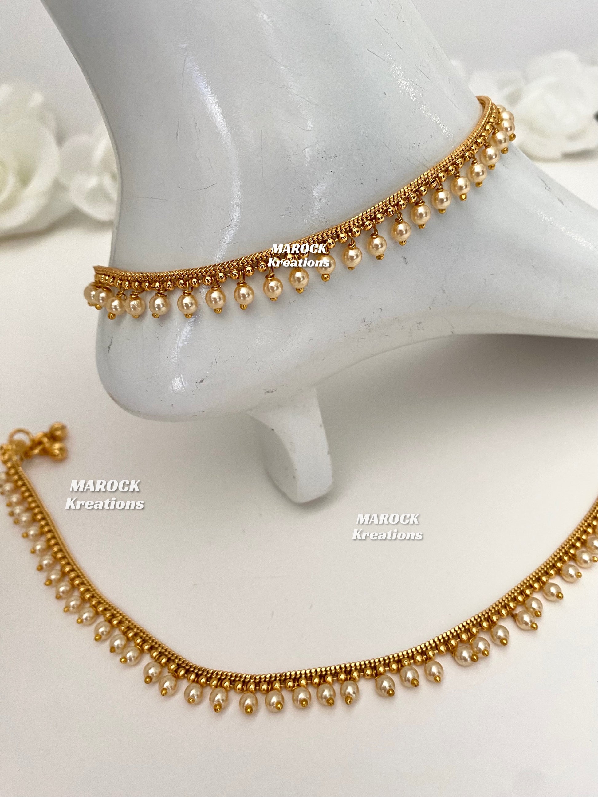 Gold plated pearls Anklets/Payal/Jhanjhran (come in a pair)