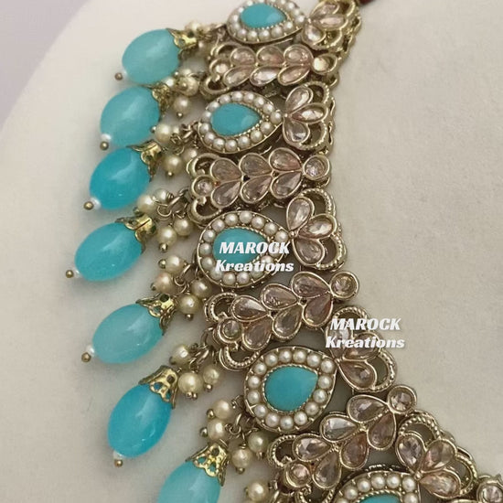 Antique Gold/Turquoise/Firozi Polki Necklace set