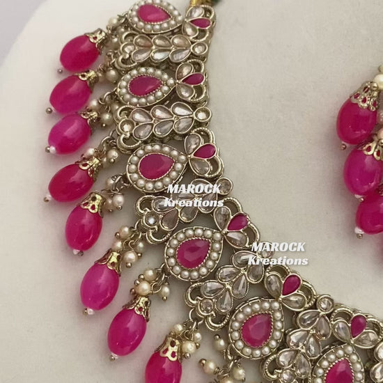 Antique Gold/Magenta/Hot Pink Polki Necklace set