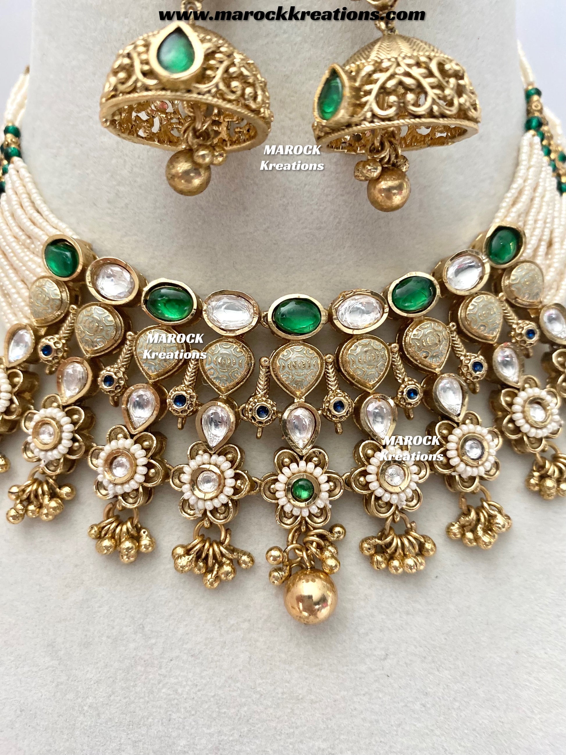 Trina Premium Quality exclusive Gold Plated Meenakari Rajwadi choker set