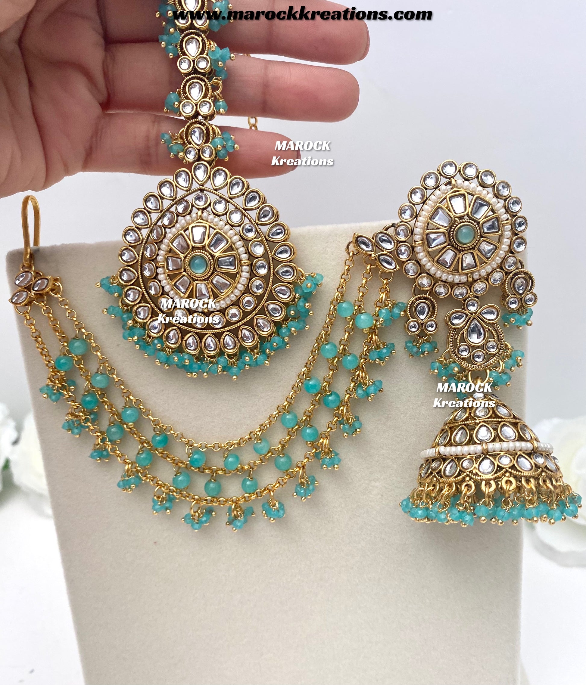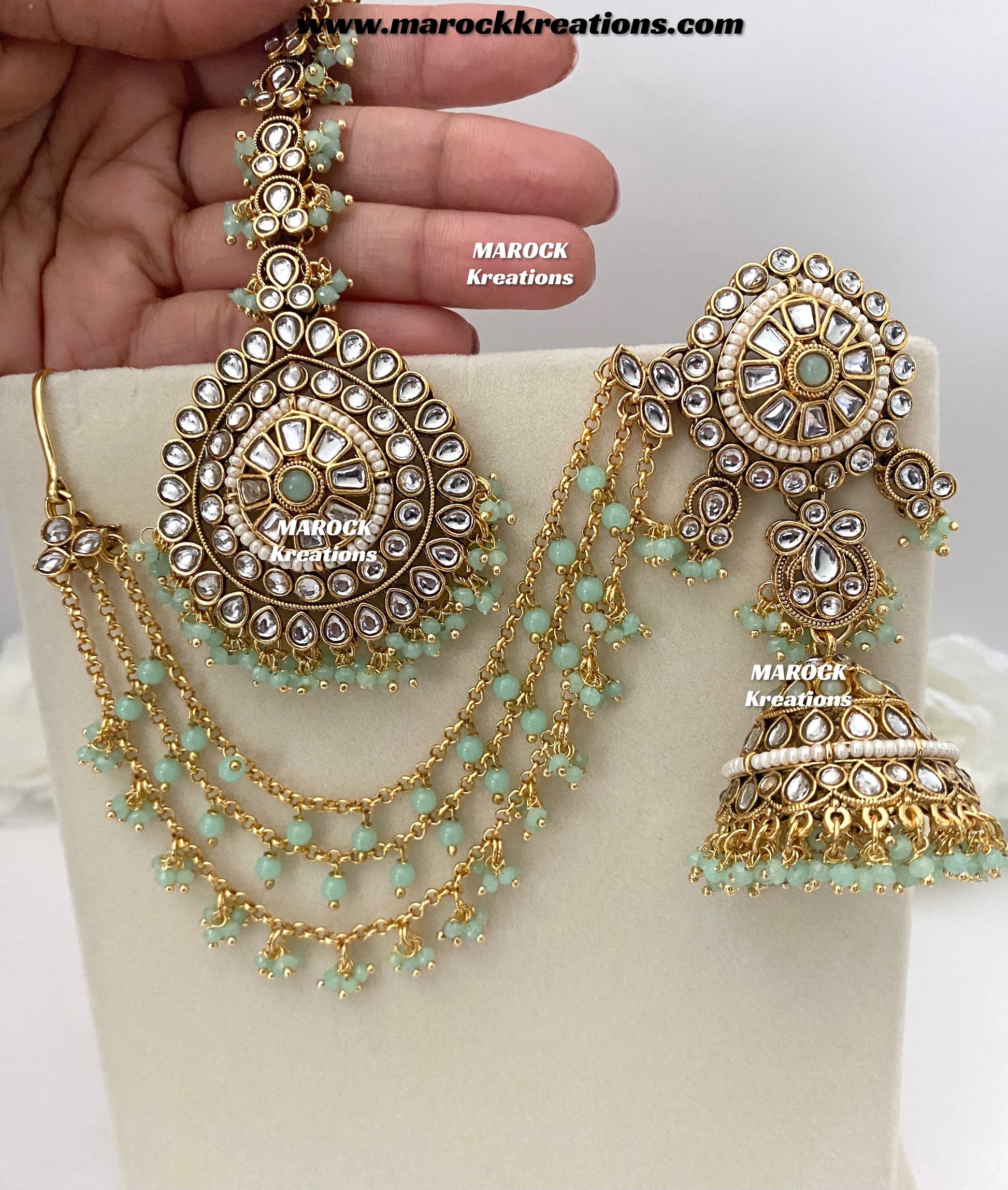 Elora Premium Quality Kundan bahubali Statement Earrings and tikka set