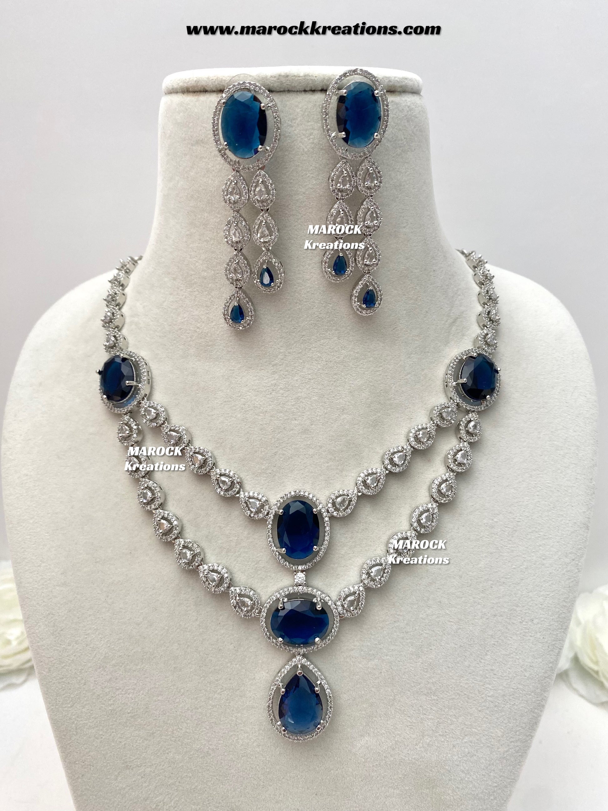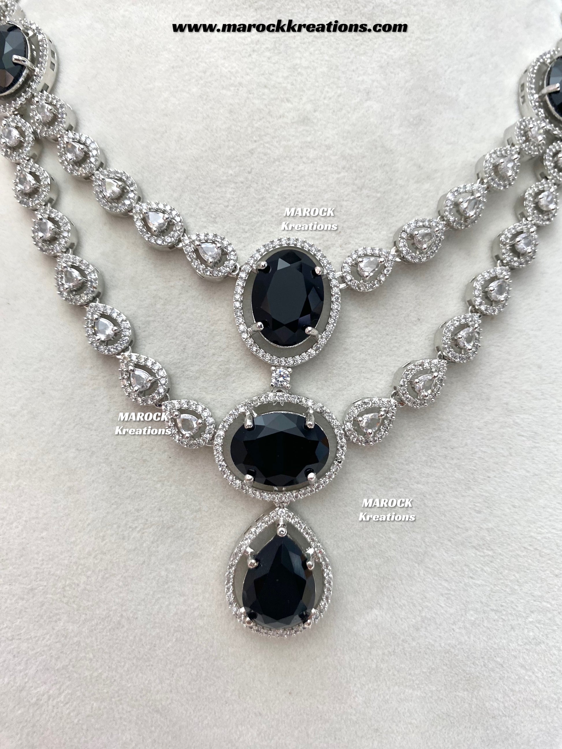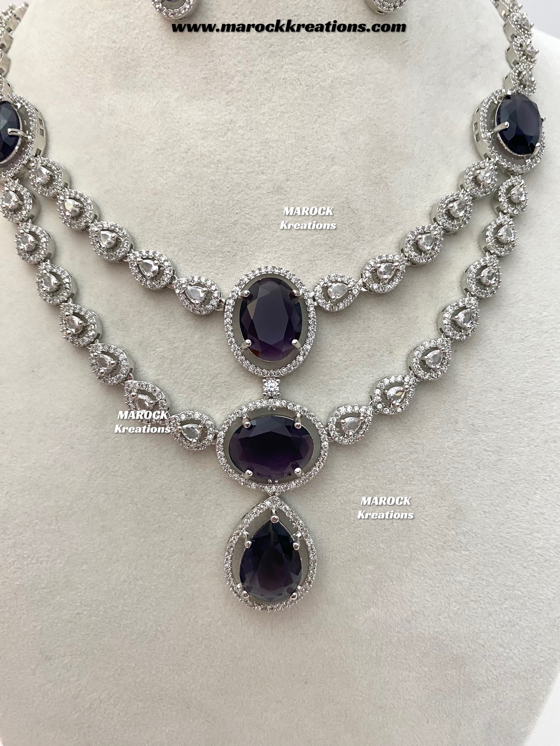 Zehra Silver American Diamond Double layer Necklace set